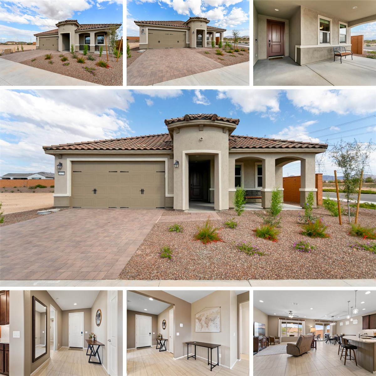 This well-appointed Hideaway model was completed in December of 2025. It's practically brand new and all furnishings are available for purchase. It features 2 bedrooms, 2 baths, and the expanded laundry that can serve as an office space or craft room. Not only is it well-priced, it also includes a host of upgrades. Enjoy a kitchen with cafe brown cabinets with under cabinet lighting, upgraded granite counters, gas range, single basin granite sink, and stainless-steel appliances. The entire home features 8-foot doors and upgraded tile and laminate flooring. The owner's suite features a large granite vanity with dual sinks and a low threshold tiled shower with seat. The guest bath includes a tub/shower combo. The laundry is pre-plumbed for a sink while the four-foot expanded garage is pre-plumbed for a soft water loop. The home has an expanded front patio, and the large backyard is very private and backs up to an open space area maintained by the HOA.